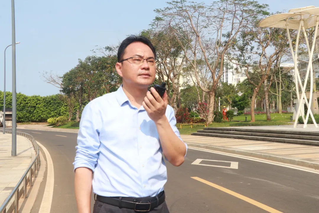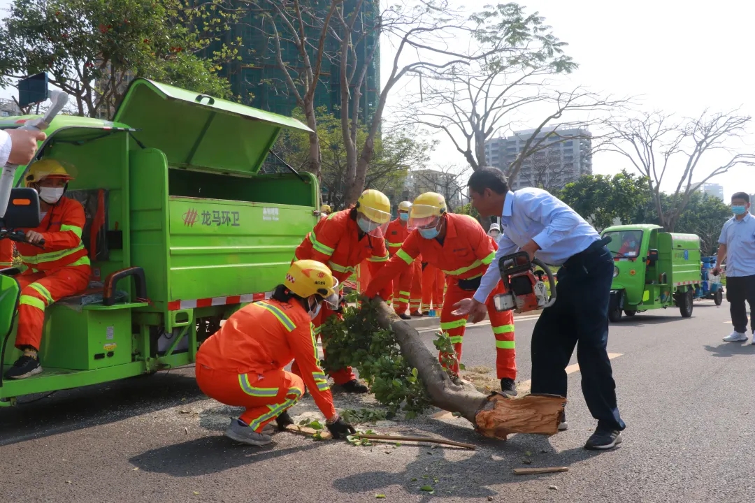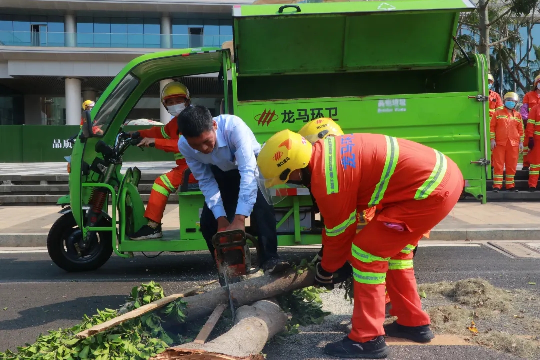 海口龙马环卫公司副总经理廖万凯宣布应急抢险开始