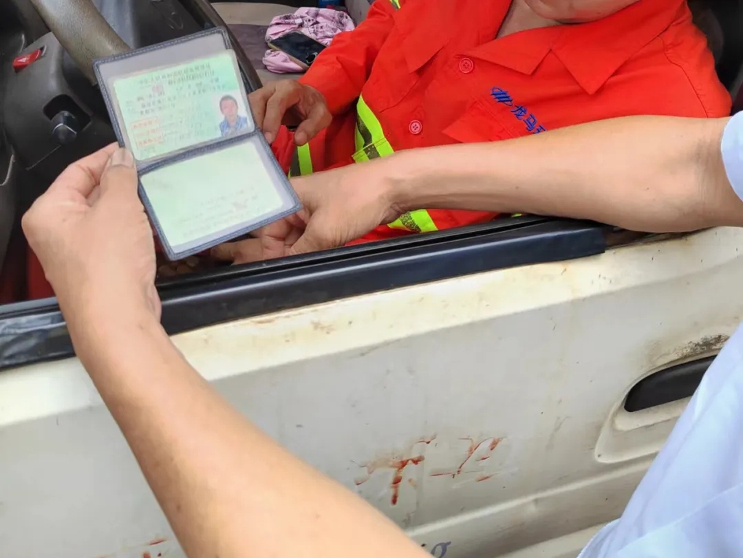 公司安委会主任韩嵩、资产管理部工作人员对车辆驾驶员进行驾驶证检查