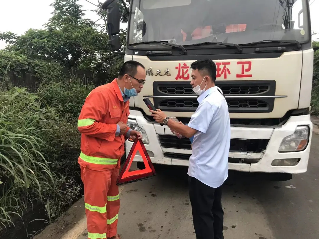 环卫工人上岗前开展班前班后会教育培训,贯宣严格遵守交通法规和安全作业规章制度,车辆行驶前坚持“车辆两检查”:安全设备有效运行、车容车貌保持整洁。并进行行驶前酒精测试和行驶证检查,严禁酒后驾驶、疲劳驾驶、无证驾驶。