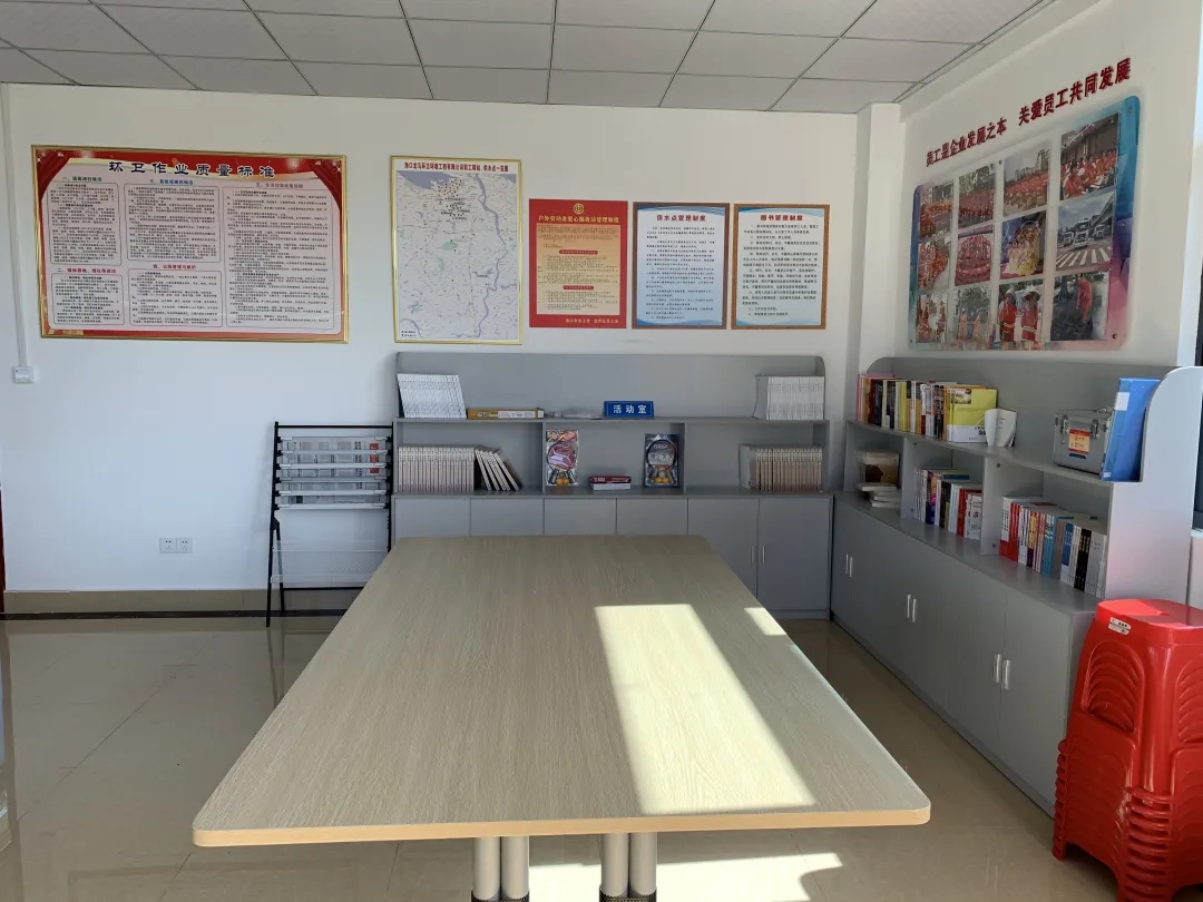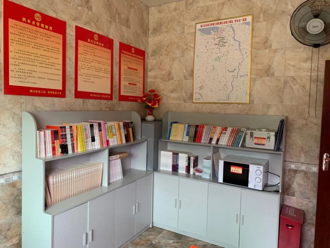 在海口市总工会、龙华区总工会的大力支持与帮助下,在龙华辖区设点建设了6个职工驿站,海口龙马环境公司工会以关爱员工为出发点,想尽一切办法“装扮”环卫驿站,驿站内配备桌椅、热茶水、空调、微波炉、医药箱等设施。还满足户外劳动者加热食品、饮水、如厕、医疗应急救助、休息,还可以放松预览书籍学习等,为一线环卫工人们“描绘”出了一个暖暖的“家”,得到职工与市民的认可与点赞。