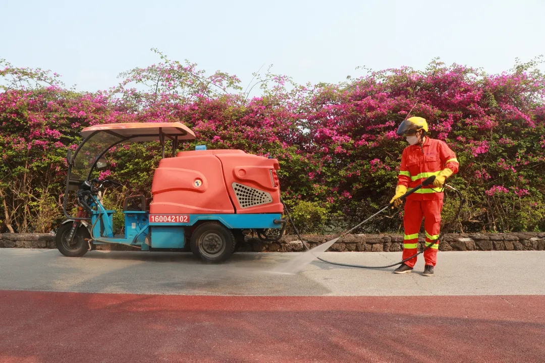 海口龙马环境公司有着各式各样的作业车辆,它们的分工也不同,有电动多功能抑尘车、洒水车、机扫车、勾臂车、护栏清洗车、电动高压三轮冲洗车、电动三轮保洁车、电动清运车等多种车辆,他们在不同岗位上各显神通,分别承担着龙华区各项保障工作任务,为美丽龙华保驾护航。