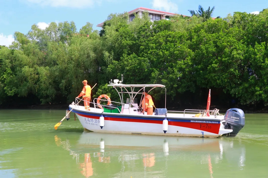 在海口之根,龙华辖区,一群蓝精灵经常在此出没,他们开着游艇、划着小船、手中拿着竹竿、网兜,这些道具,都是他们用来清理水域岸坡、水面垃圾的“杀手锏”。这些蓝精灵们负责着龙华区三十二条水域的保洁清理工作,通过“陆、海、空”三位一体作业模式创新治水管理,全力打造水上环卫专业队伍,为龙华区水域高质量发展生态底色而努力着。