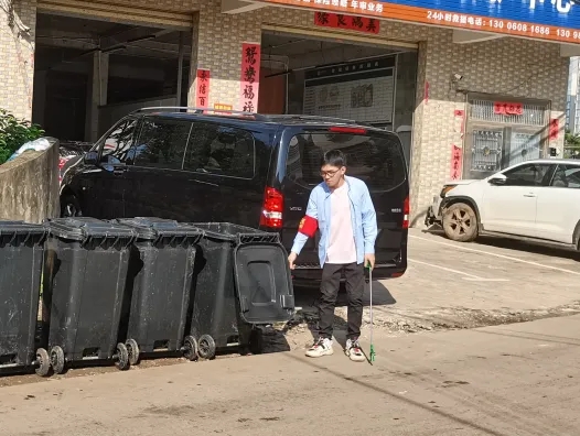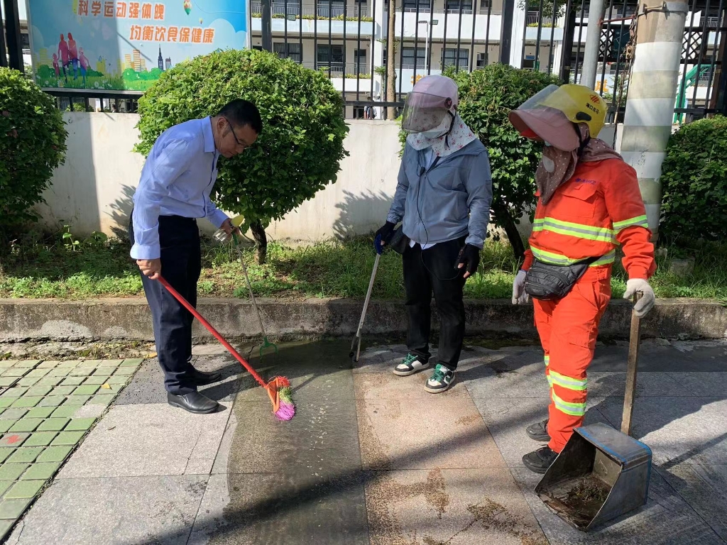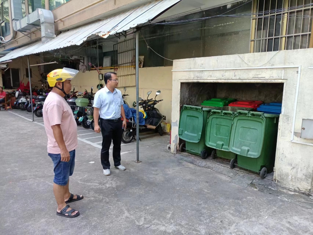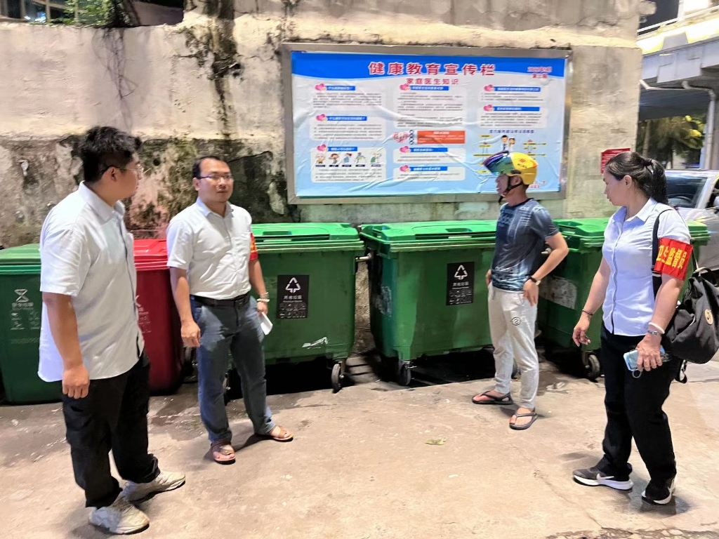龙华区环卫局副局长吴盛林在一片区检查卫生保障工作