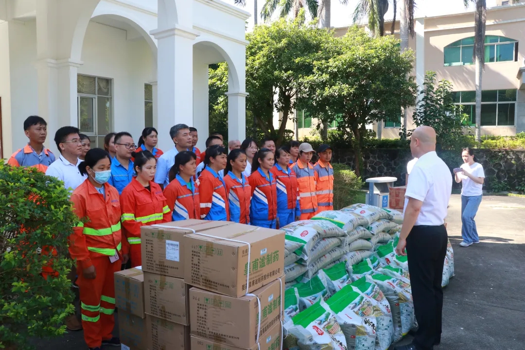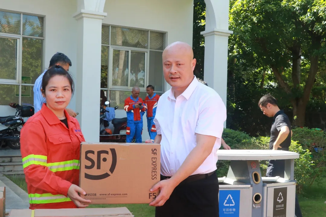 活动现场,海口市环境发展有限公司董事长周小勇、副总经理黎健、总经理助理曾桂对顶高温、冒酷暑坚守在工作岗位的环卫工人表示感谢,亲切的嘱咐环卫工人在城市清洁工作中,要时刻注意自身安全,在工作的同时要预防中暑,以健康的身体在平凡的岗位上做出更大的贡献。
