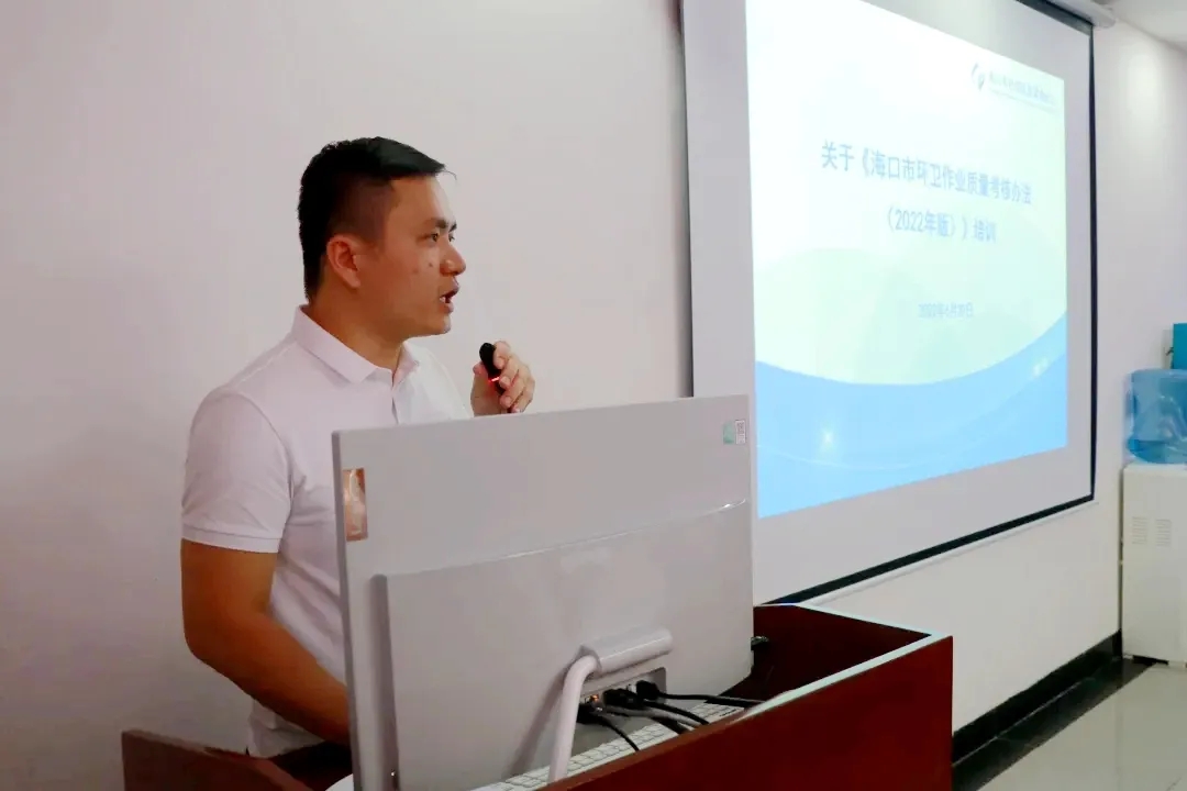 培训开始前,海口市园林和环境卫生管理局监督科科长黄建科针对《考核办法2022版》提出:管理人员要牢固掌握考核标准,理论联系实际开展各项工作,才能进一步完善精细化管理和提升环卫作业质量。