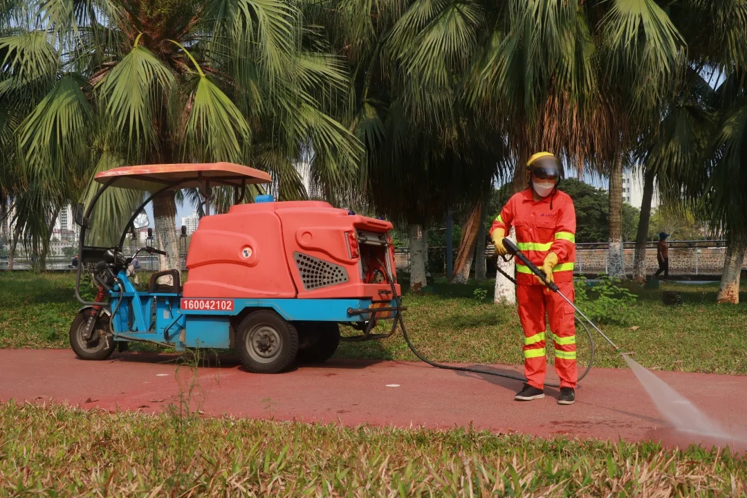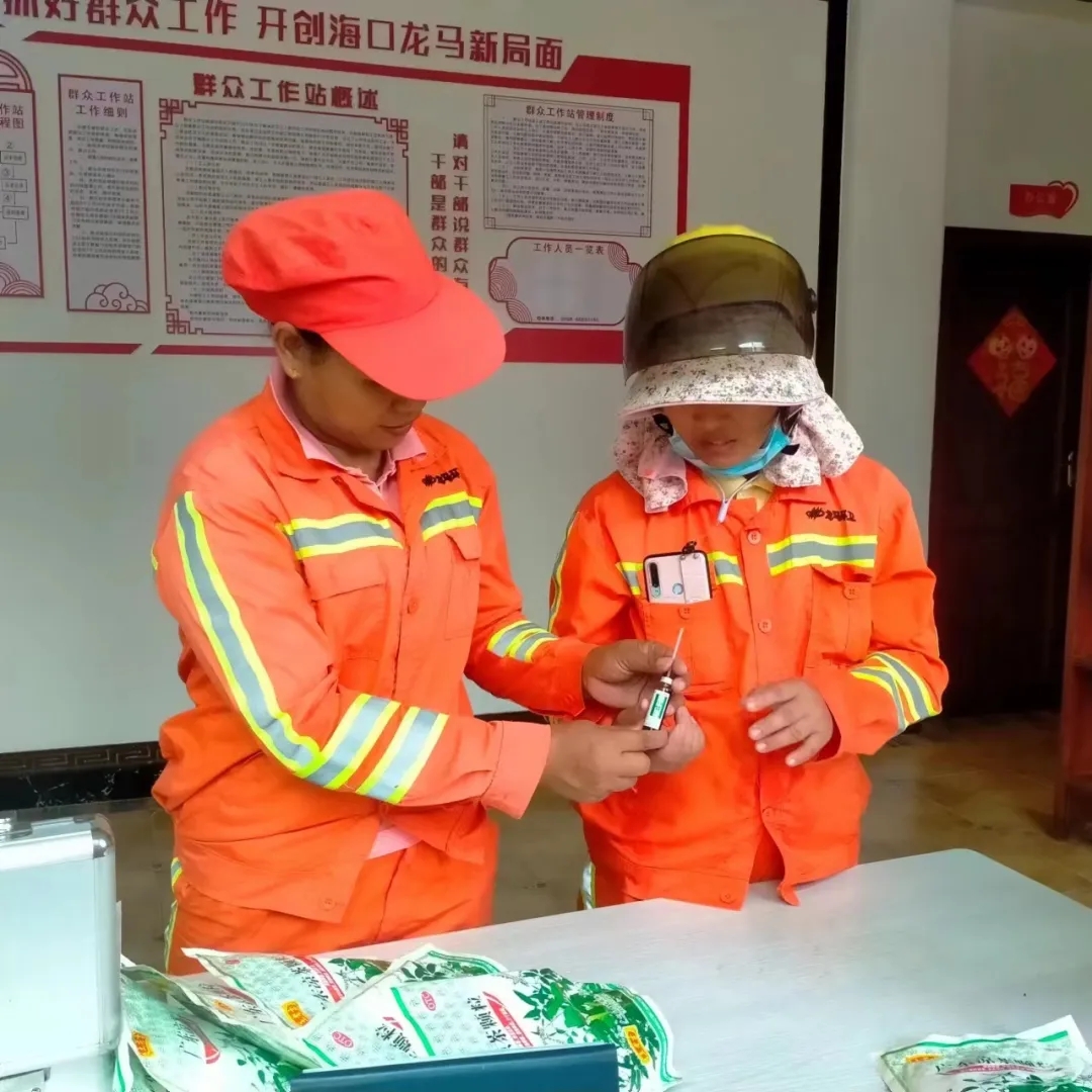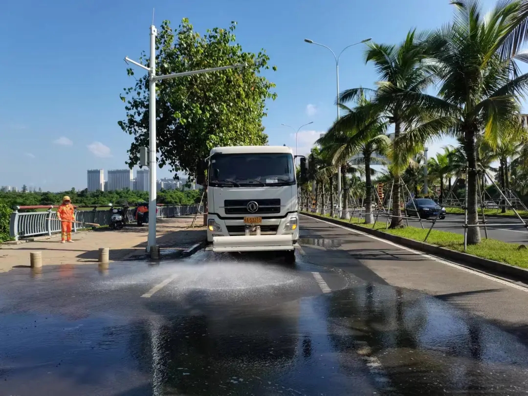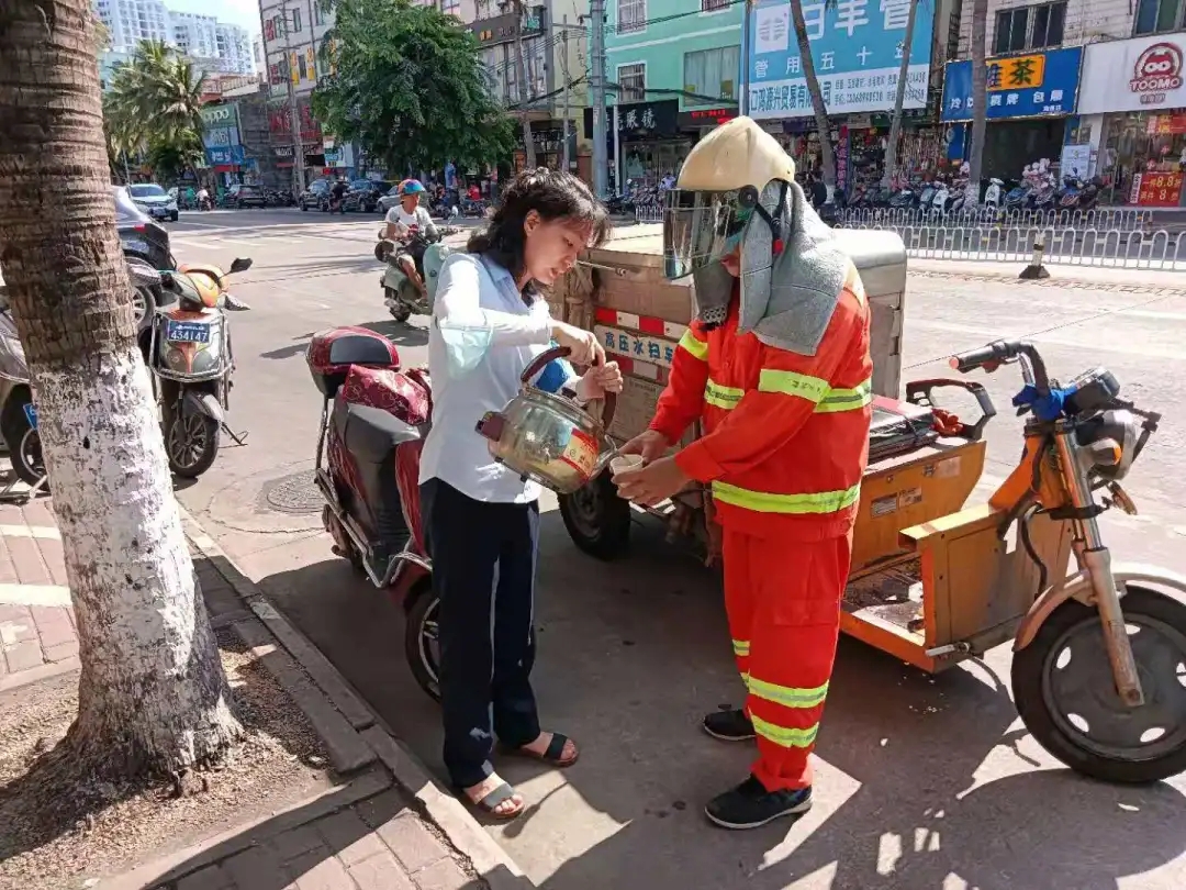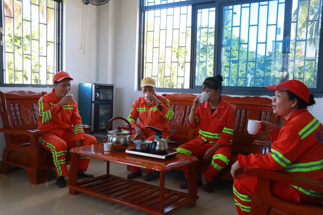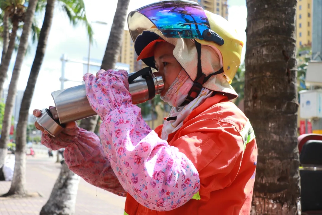 海口项目公司通过加大机械保洁力度,减少人工作业时间,降低人工劳动强度,在确保现场作业不降低作业标准的情况下,尽量避开中午高温时段作业,灵活安排环卫工人休息轮岗,合理安排作息时间等方式切实保护环卫工人健康安全,及时调整因酷暑带来的身体不适。