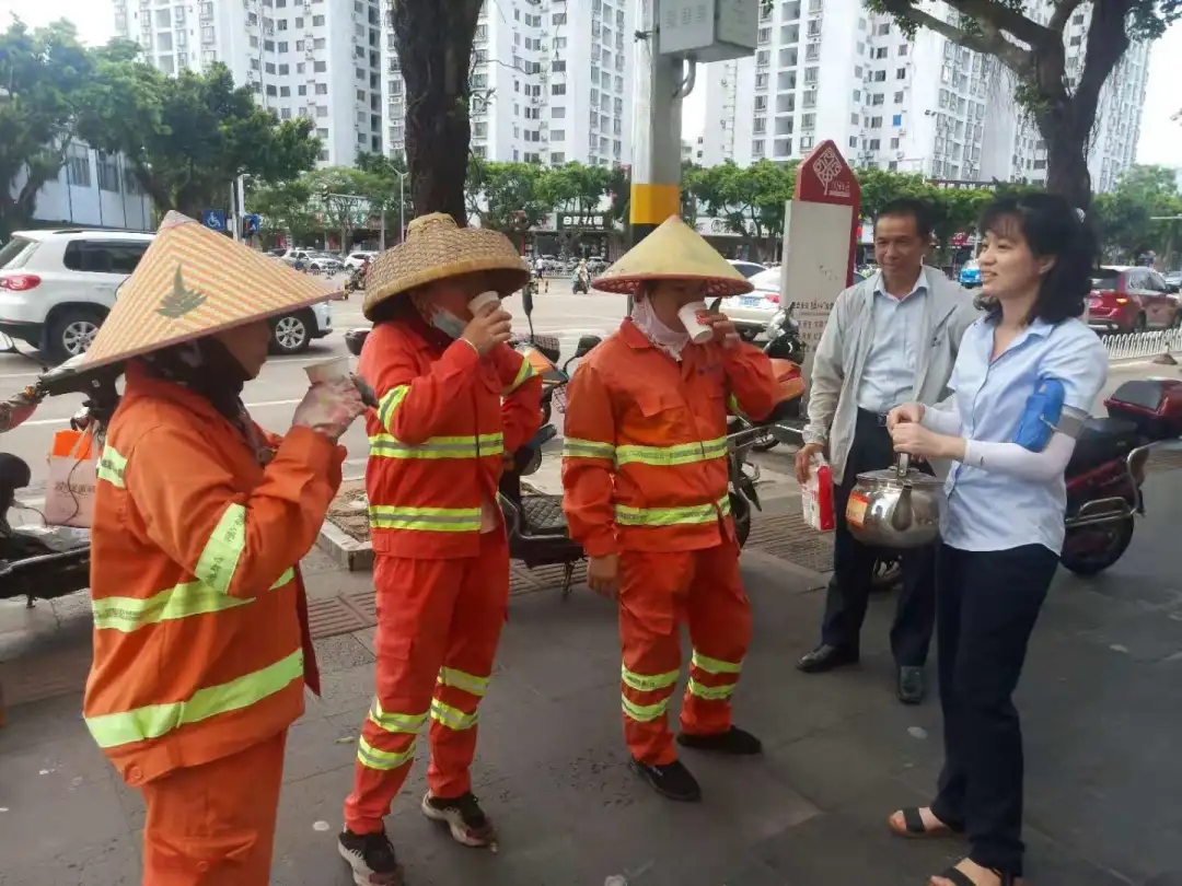 每到高温天气,海口项目公司都会开展“夏日送清凉”活动,公司给各片区购买了鹧鸪茶、菊花、罗汉果、绿豆等夏日凉品,由公司工会工作人员、片区管理人员每天坚持上路送水,使一线职工及时降温解暑。