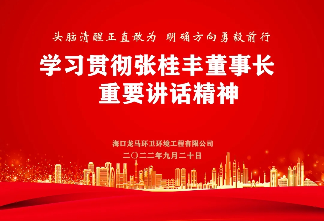 为进一步深入贯彻落实董事长张桂丰《头脑清醒正直敢为,明确方向勇毅前行》重要讲话精神,9月20日上午,海口龙马环卫公司总经理陈志坚主持召开专题会议,传达学习董事长的重要讲话和指示精神,公司中层以上管理人员参加会议。