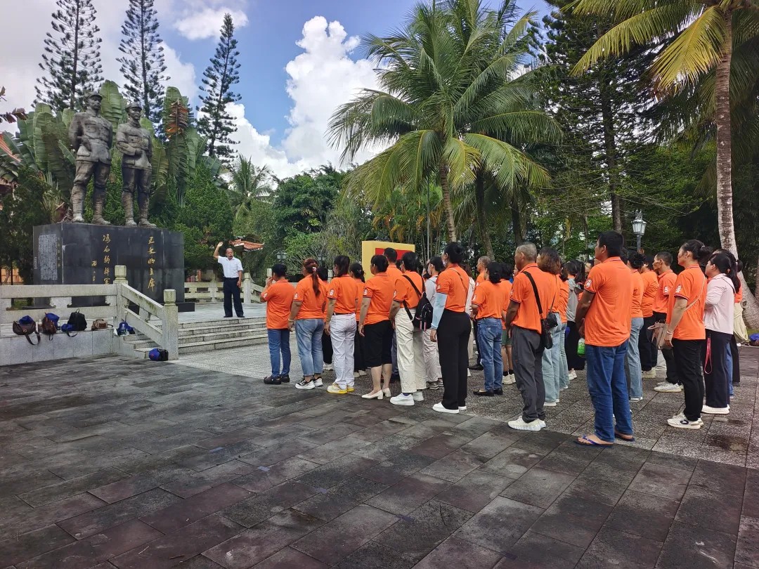 定安母瑞山100 名优秀环卫工人身着统一服装,怀着期待的心情开启了这场意义非凡的旅程。首站抵达的是定安县母瑞单革命根据地,这里承载着厚重的红色历史记忆。在讲解员的带领下,大家走进当地红色教育基地,一幅幅珍贵的历史图片、一件件承载着岁月痕迹的革命文物,生动再现了革命先辈们为理想信念浴血奋战的峥嵘岁月。环卫工人仔细聆听革命故事,不时驻足凝视,深刻感悟着红色基因中蕴含的坚定信仰与奋斗精神。“平时我们埋头于城市清洁工作,很少有机会系统了解这些革命历史,这次参观让我深受触动,今后会以更饱满的热情投入工作,守护好我们的城市。” 优秀环卫工人梁关进感慨道。