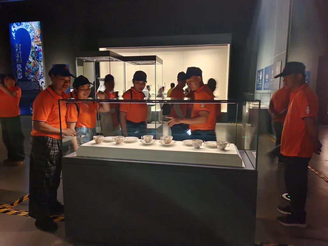 随后,队伍前往琼海南海博物馆,这座藏在海边的展馆,是南海的“立体百科全书”:沉船文物裹着千年的浪涛声而来,青瓷碎片上的纹路,仿佛还沾着古代商船的海风;珊瑚与贝类标本晕着海底的光,从热带鱼群到深海巨兽,每一件展品都在说“这是咱们南海的宝藏”。