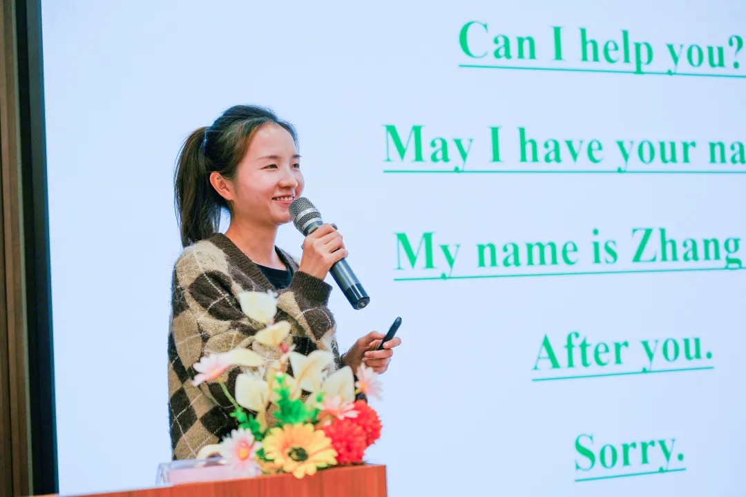 这掌声不仅是对徐小丽的鼓励,更是对所有人学习成果的认可。课程特别设置了“游客问路”“物品捡拾”等情景模拟环节,让工人们在角色扮演中大胆开口,将课堂知识转化为随时可用的服务技能。