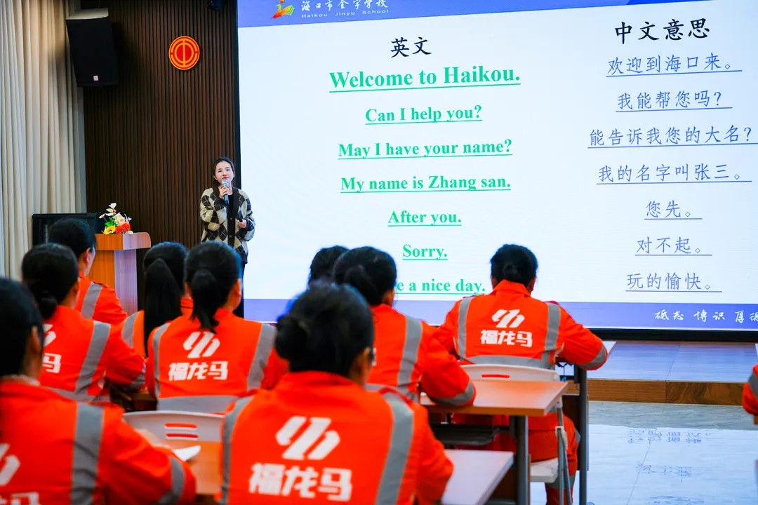 在海南全力备战封关的关键阶段,城市的“软环境”提升同样重要。福龙马海口公司此次系列英语培训,正是着眼于封关后可能激增的国际交流需求。这些平日里用扫帚装扮城市的劳动者,如今正努力用语言武装自己,准备以更专业、更友善的姿态服务八方来客。